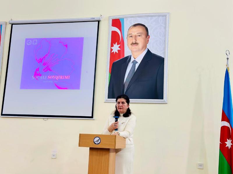 Kollecin tarix müəllimi Turanə Hüseynov Xocalı soyqırımı haqqında geniş məruzə ilə çıxış edərək, Xocalıda törədilmiş amansız qətliam təkcə türk dünyasına deyil, bütövlükdə bəşəriyyətin mütərəqqi dəyərlərinə, insanlığa və beynəlxalq hüquq normalarına qarşı yönəlmiş soyqırım aktı olduğunu bildirib.