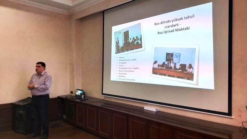 UNEC Rus İqtisad Məktəbinin (RİM) nümayəndələri direktor müavini Anar Eyyubov və “Tətbiqi iqtisadiyyat” kafedrasının dosenti Rauf Salayev abituriyentlərlə iş proqramı çərçivəsində 6 nömrəli məktəb-liseydə abituiyentlərlə görüş keçirib.
