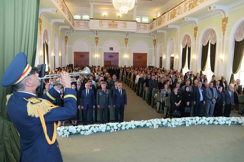 Tədbirin aparıcısı,  Azərbaycan Respublikasının Xalq artisti Nurəddin Mehdixanlı çıxış edərək 27 sentyabrın dövlətimizin, millətimizin azadlıq və qürur günü olduğunu deyib: “Bu gün biz şəhidlərimizi yad edirik – onların hər biri bizim milli kimliyimizin, azadlığımızın və gələcəyimizin daşıyıcısıdır. Şəhidlərimiz yalnız canlarını fəda etmədilər, onlar bizə kim olduğumuzu xatırlatdılar. Onlar göstərdilər ki, vətən uğrunda qurban vermək həm də əbədi bir iz qoymaqdır”.