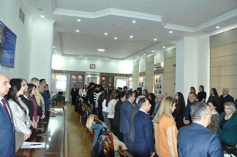 İqtisadiyyat və idarəetmə fakültəsinin əməkdaşlarının iştirakı ilə keçirilən tədbirin açılış mərasimində Ulu Öndər Heydər Əliyevin və Vətən uğrunda şəhid olmuş qəhrəmanların əziz xatirəsi ehtiramla yad edilib.
