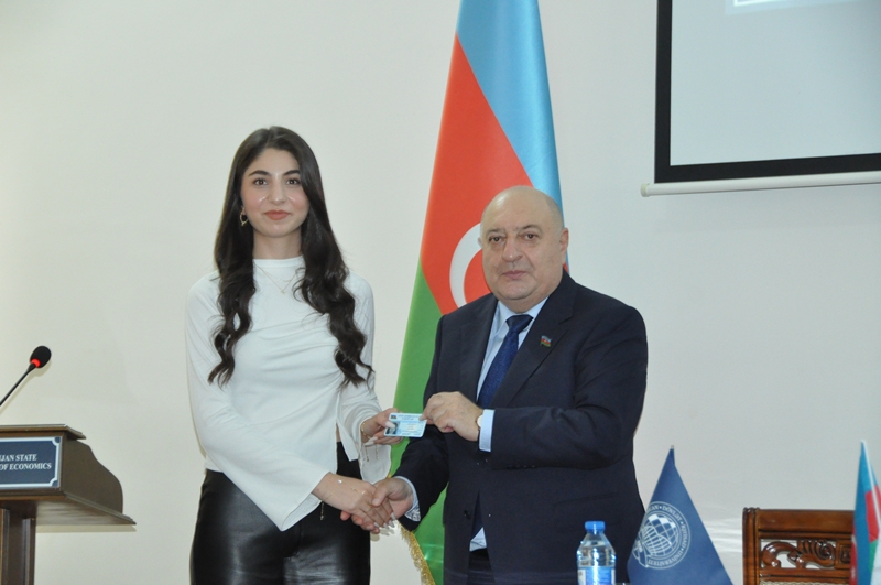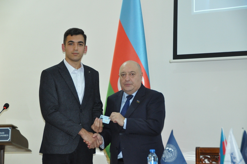 Sonda YAP-a yeni üzv olmuş UNEC tələbələrinə Yeni Azərbaycan Partiyasının biletləri  təqdim edilib.
