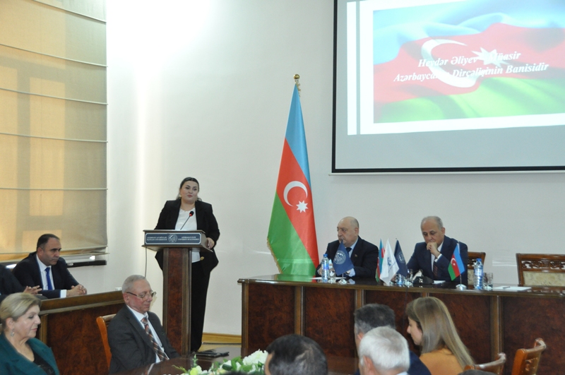 UNEC-in “İqtisadiyyat” kafedrasının dosenti Solmaz Gözəlova çıxış edərək, Ümummilli Lider Heydər Əliyevin siyasi irsindən, onun rəhbərliyi ilə əldə olunan nailiyyətlərdən və Azərbaycanın müstəqilliyinin bərpası, onun qorunması yolunda atdığı qətiyyətli addımlardan danışıb.