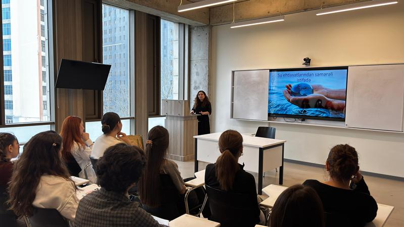 UNEC Dizayn Məktəbində “Su ehtiyatlarının qorunması və səmərəli istifadəsi” mövzusunda maarifləndirici seminar keçirilib.