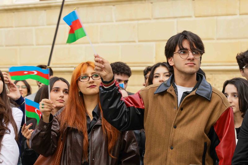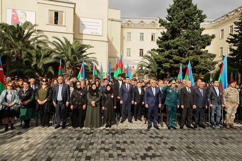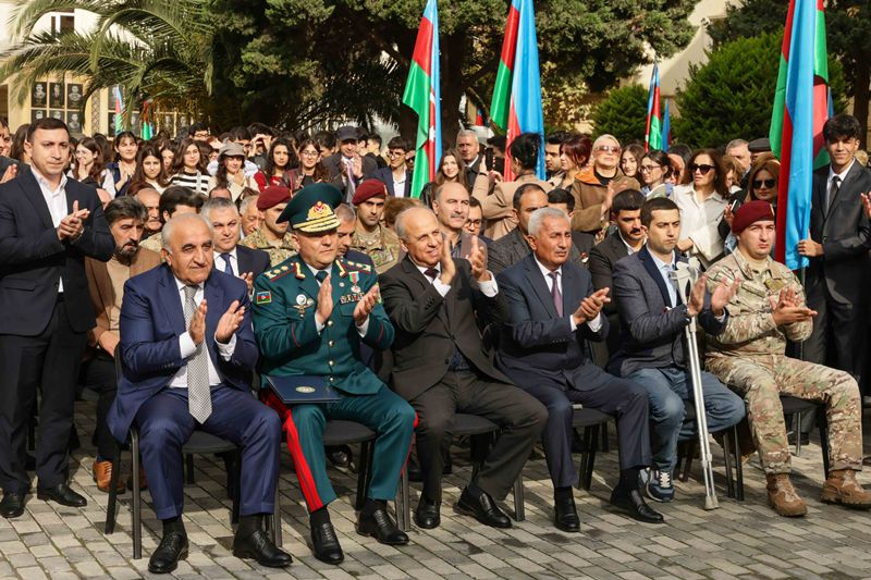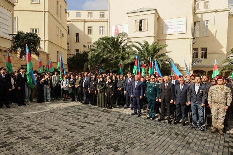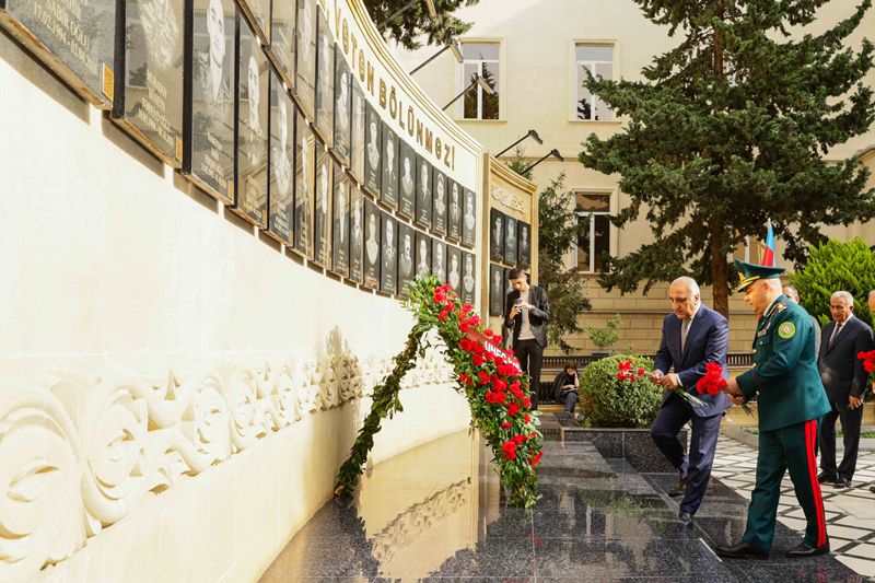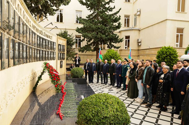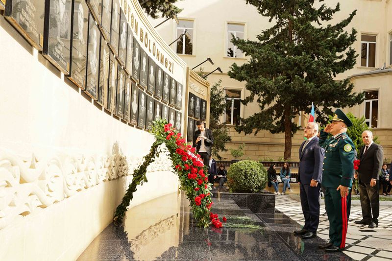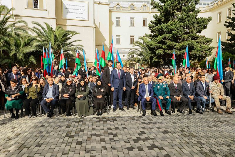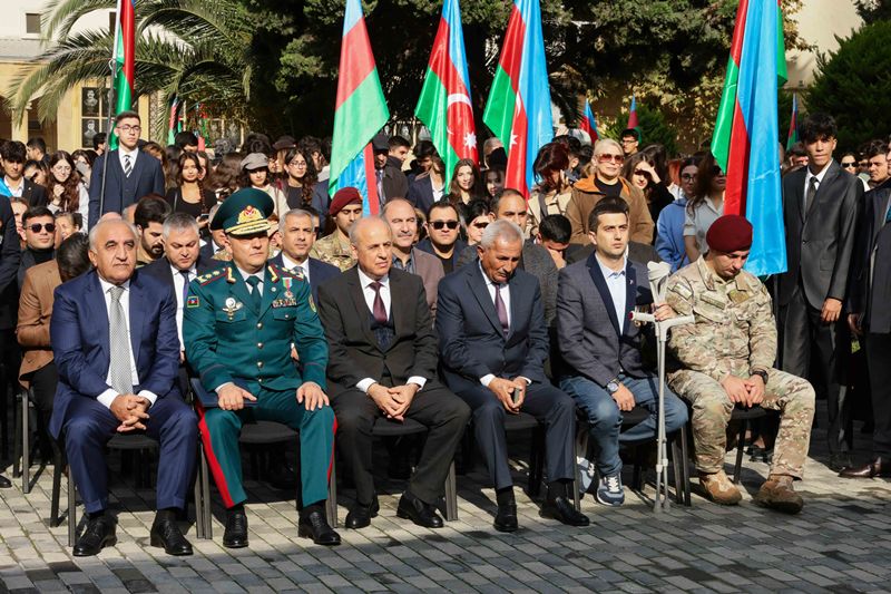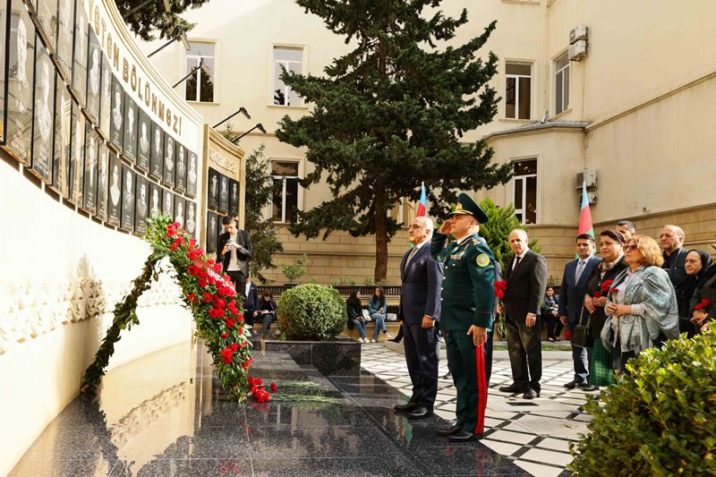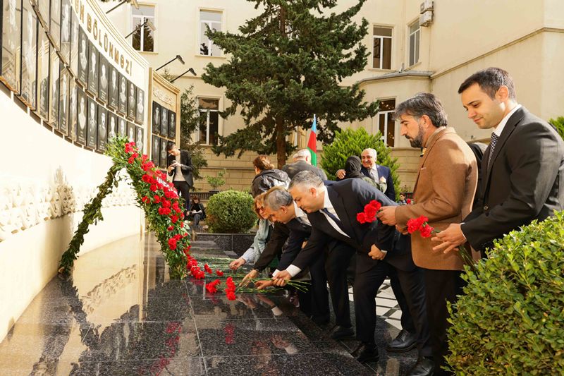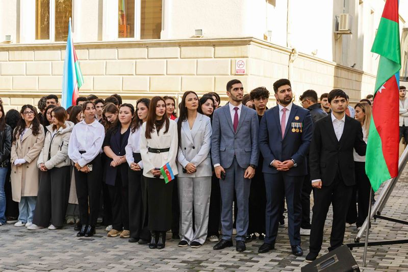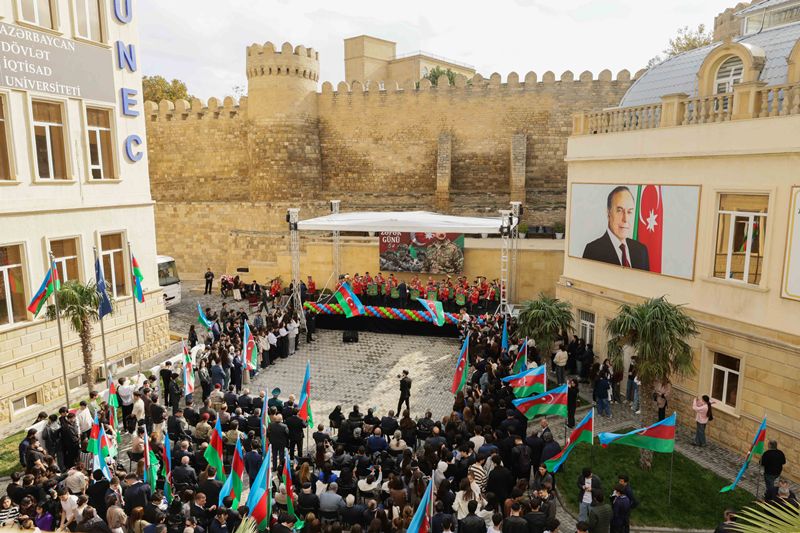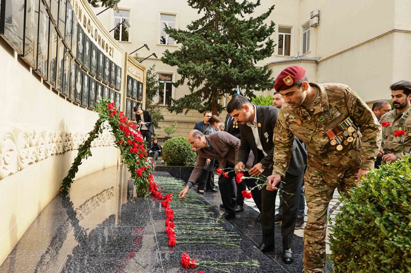 Rəsmi hissəyə keçməzdən öncə tədbir iştirakçıları UNEC-in şəhid olmuş tələbə və məzunlarının xatirəsinə ucaldılmış abidə kompleksini ziyarət edərək, önünə gül dəstələri düzüblər, qəhrəman Vətən övladlarının əziz xatirəsini dərin ehtiramla yad ediblər.