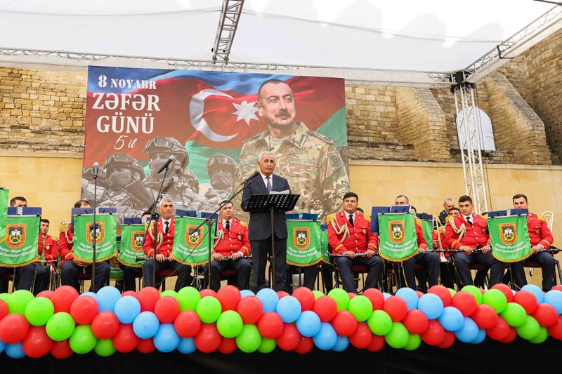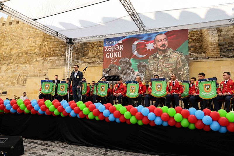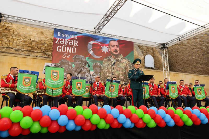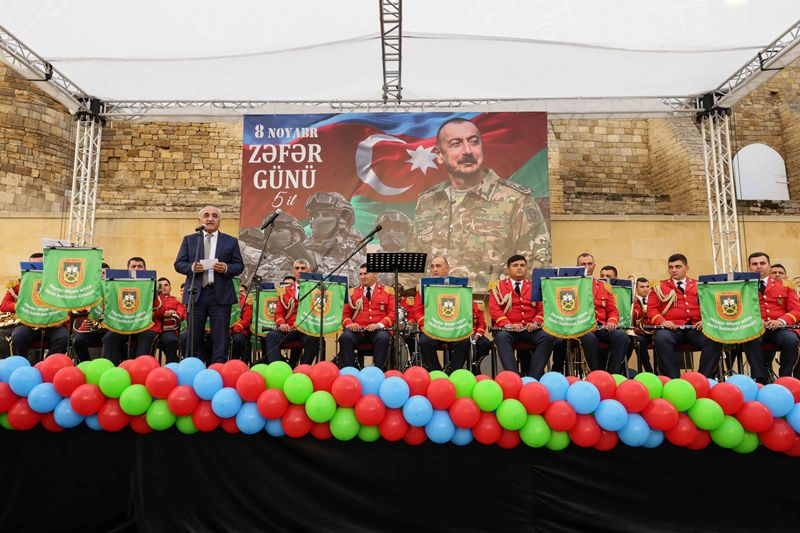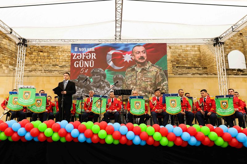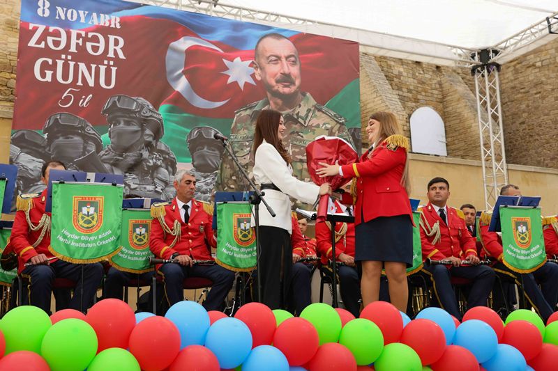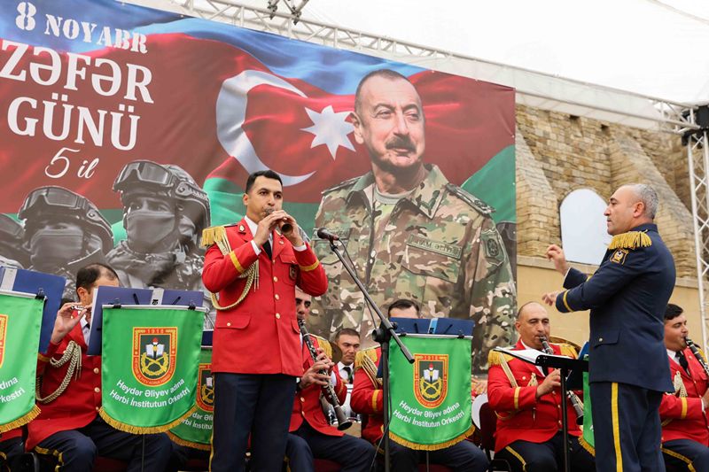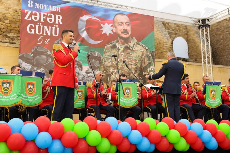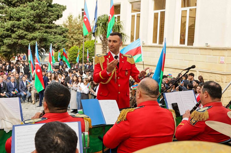Tədbir Azərbaycan Respublikası Müdafiə Nazirliyinin Heydər Əliyev adına Hərbi İnstitutunun orkestrinin rəhbəri, hərbi dirijor, kapitan Müşfiq Sultanovun müşayiəti ilə təqdim olunan təntənəli konsert proqramı ilə davam edib.