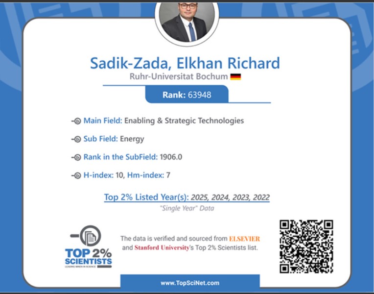Azərbaycanlı alim, həmçinin 2022-ci ildən ABŞ-nin Stenford Universiteti və dünyanın ən böyük elmi ədəbiyyat nəşriyyatlarından olan “Elsevier” tərəfindən hazırlanmış “Top 2% Scientists” siyahısında yer alır. Bununla yanaşı, Elxan R. Sadıxzadənin elmi fəaliyyəti artıq dördüncü ildir ki, “Single Year Impact” kateqoriyasında “Yeni texnologiyaların tətbiqinin iqtisadiyyatı” sahəsi üzrə yüksək qiymətləndirilir.