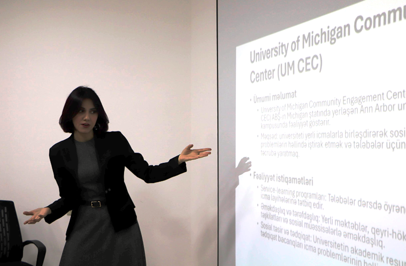 UNEC Xanım Tədqiqatçılar Şurasının rəhbəri, siyasi alim Nərgiz Hacıyeva post-konflikt cəmiyyətlərdə sosial etimadın bərpası və "Universitet-Biznes-İcma" modelinin tətbiqi barədə geniş təqdimatla çıxış edib.