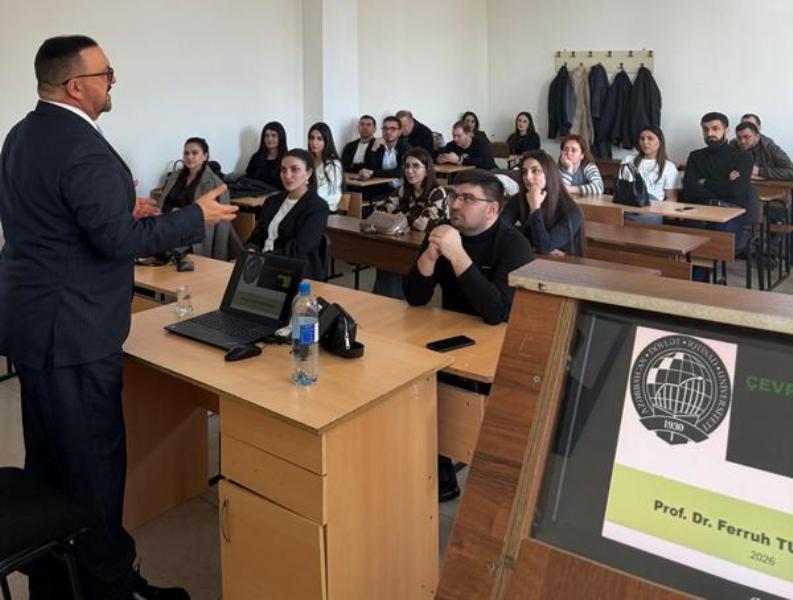 В Закатальском филиале в целях повышения качества обучения и интеграции международного академического опыта в образовательный процесс, профессор Университета Сакарьи Фаррух Тузчуоглу и профессор Университета Болу Абант Иззет Байсал Хасан Тутар в течение семестра преподают студентам заочного обучения дисциплины «Экономика окружающей среды», «Международный маркетинг» и «Стратегический маркетинг». Учебный процесс организован в соответствии с существующими учебными планами, основанными на современных научных подходах и международном академическом опыте.