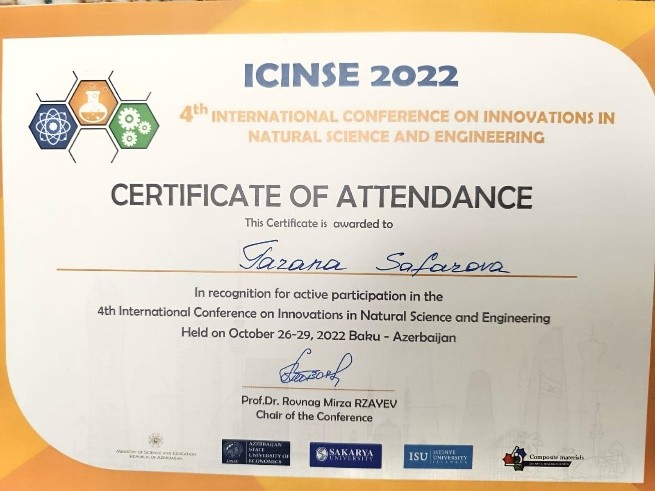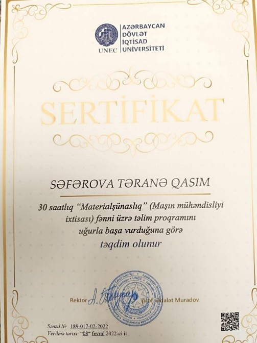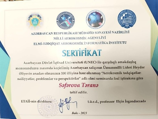 2023-cü ildə UNEC-də təşkil olunan yeni fənn üzrə təlim proqramında 8 fənn üzrə sertifikatın sahibi olmuşdur.