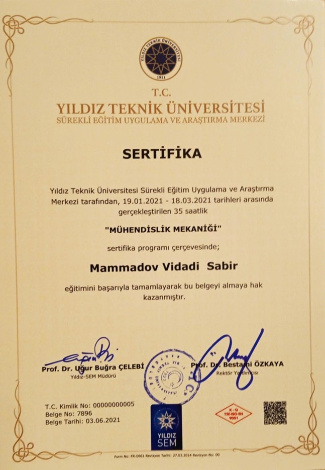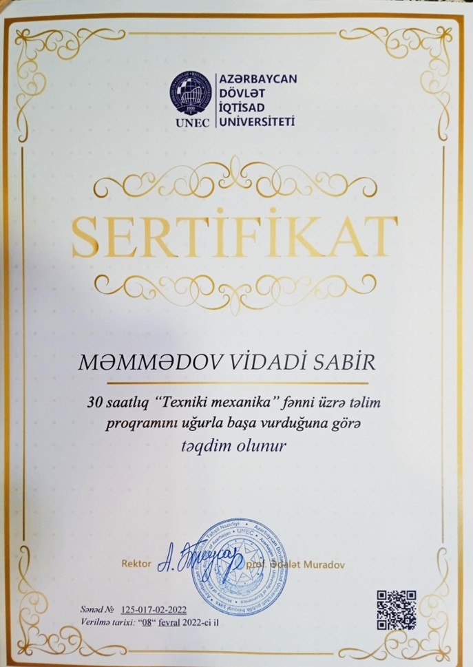“Mühəndislik və tətbiqi elmlər” kafedrasının baş müəllimi